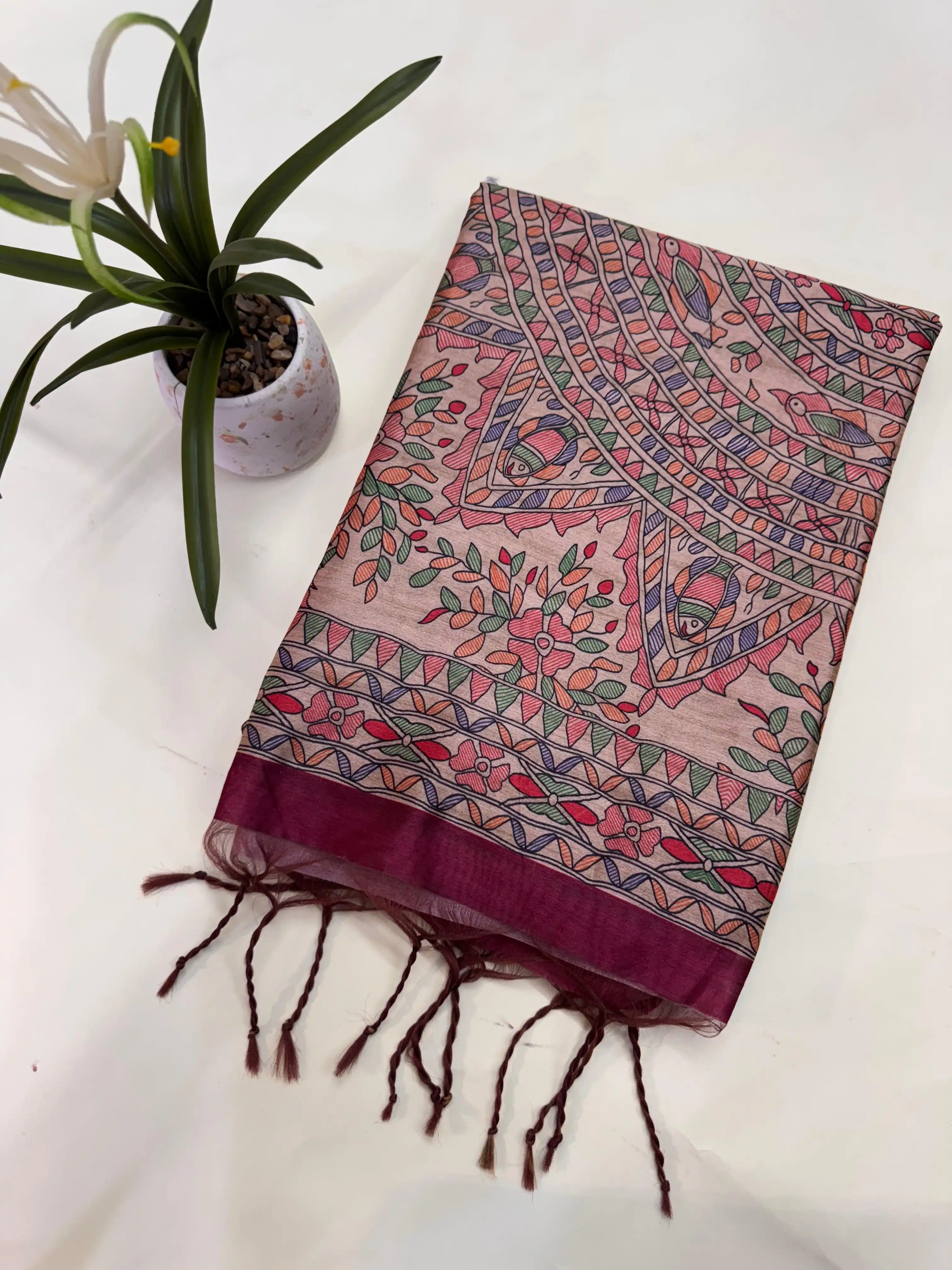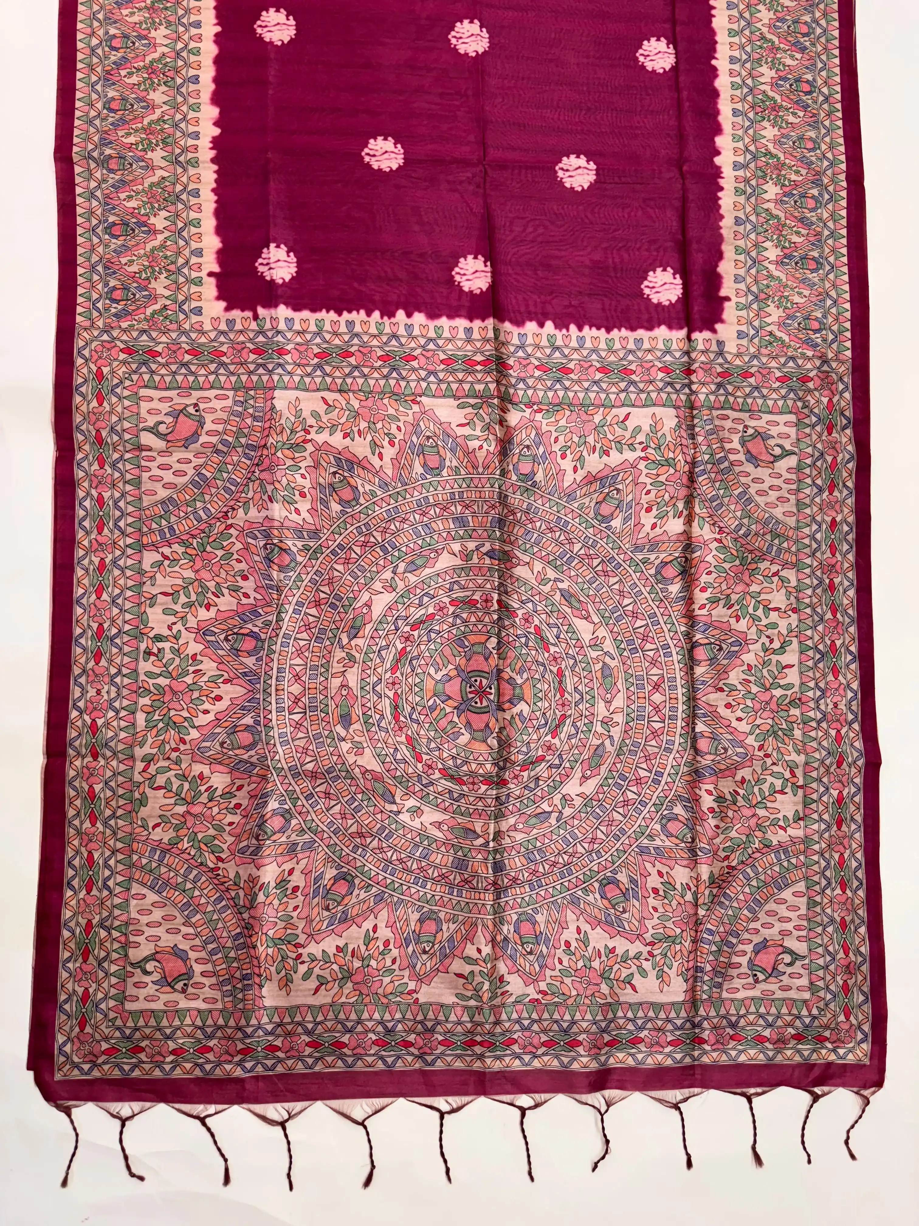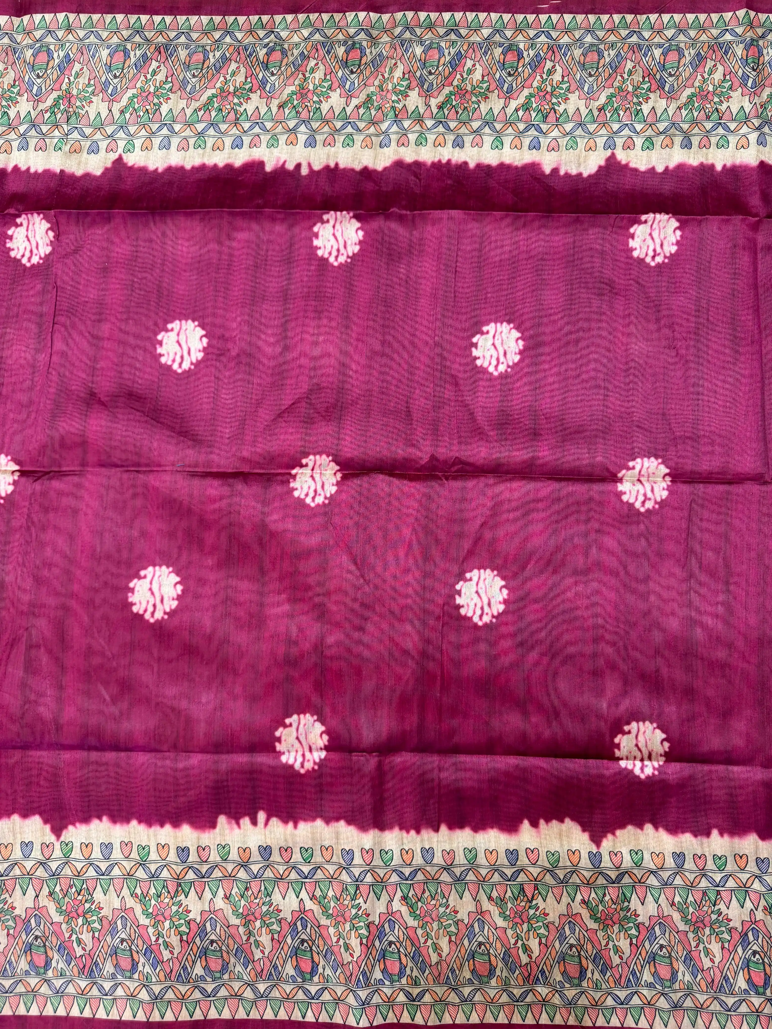 Tussar Silk Madhubani 101 - PINK