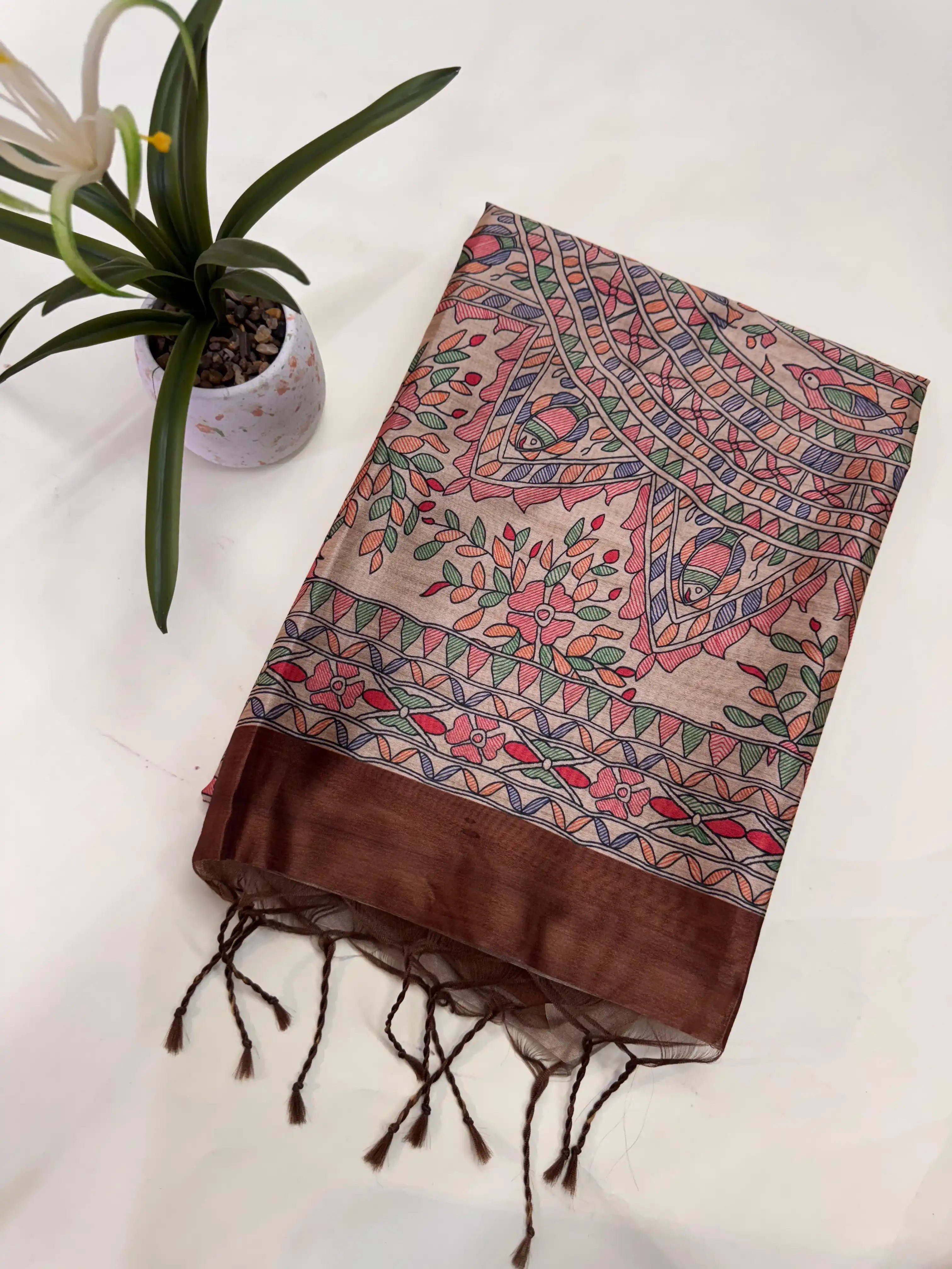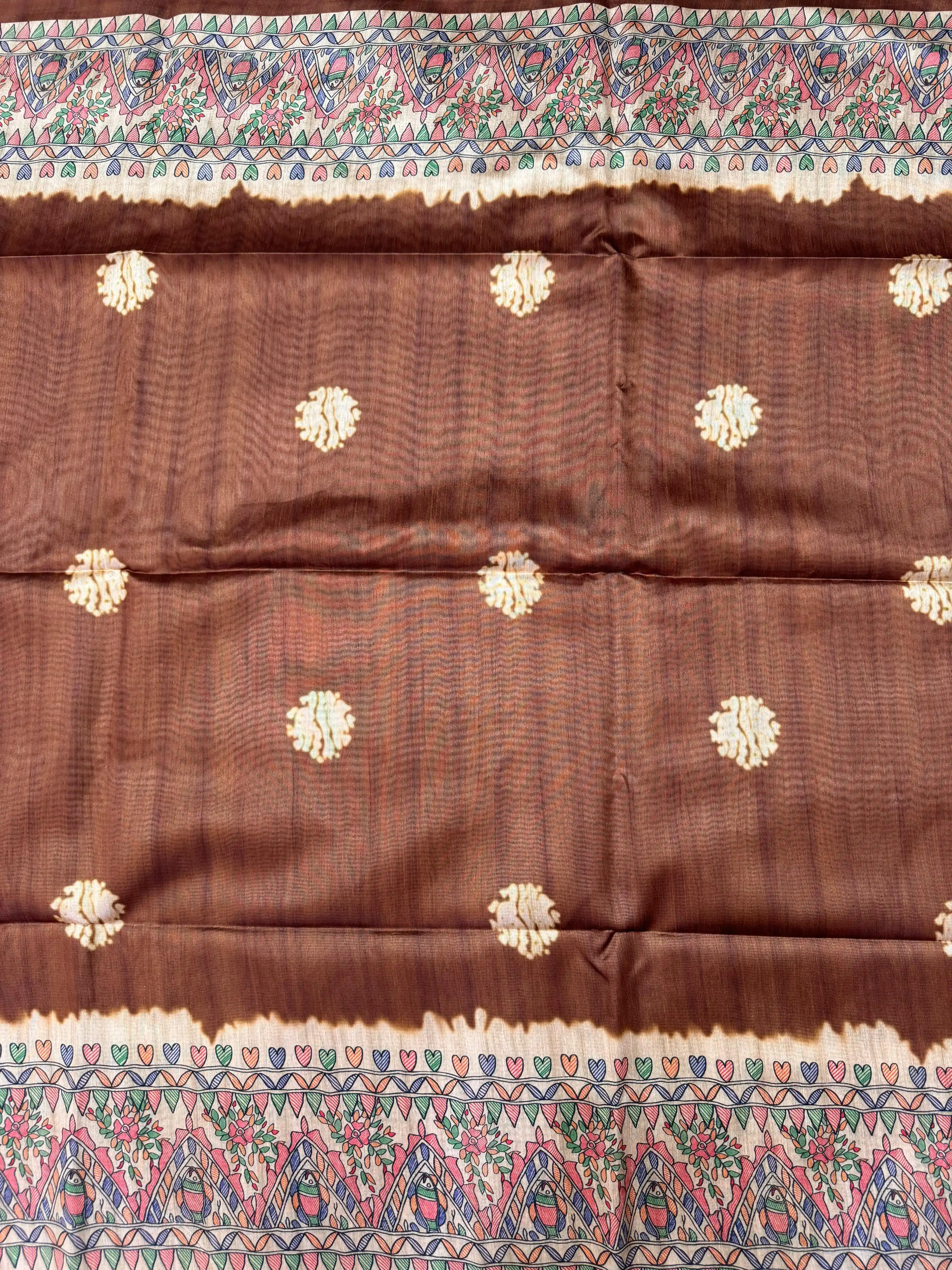 Tussar Silk Madhubani 101 - COFFEE